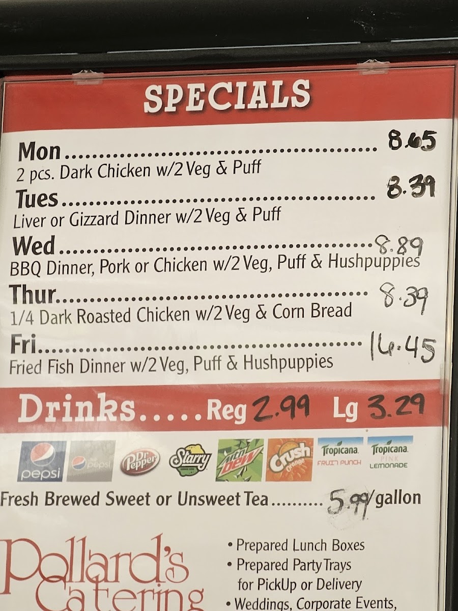 Pollard's Chicken at Tidewater (Norfolk) Menu